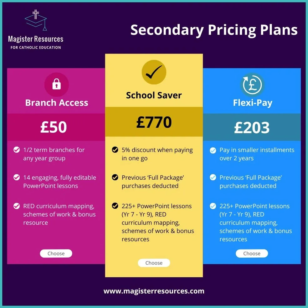 The Firm Foundations secondary 'School Saver' is the ultimate value package for comprehensive teaching. This exceptional offer provides schools with a 5% discount on all 18 fully editable, high-quality, CES approved(with full endorsement pending completion of all year groups), RED branches from Year 7 - Year 9. Furthermore, our Firm Foundations series has been granted an Imprimatur, giving you peace of mind that our resources truly reflect Church teaching.