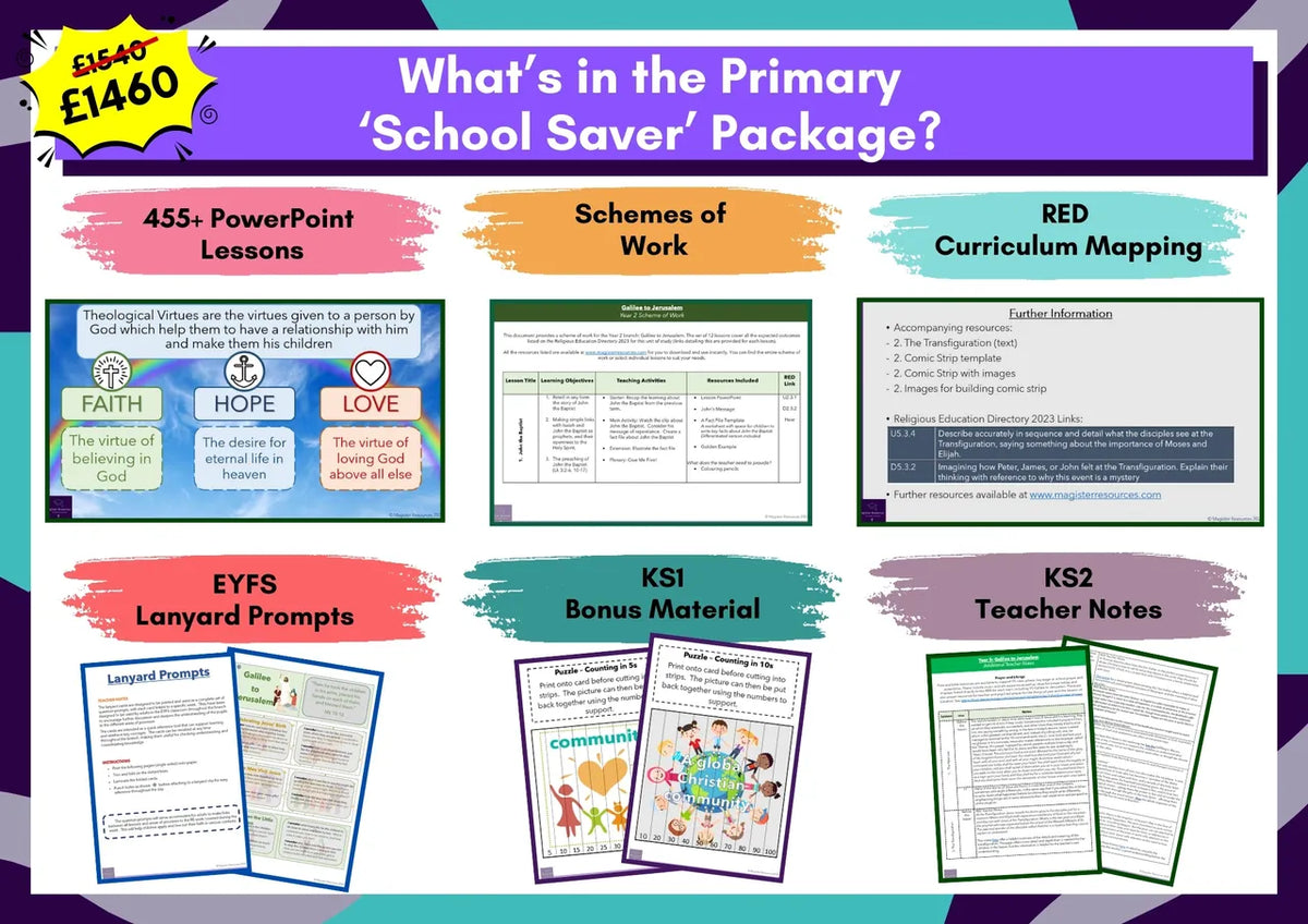 The Firm Foundationsprimary 'School Saver' is the ultimate value package for comprehensive teaching. This exceptional offer provides schools with a 5% discount on all 42 fully editable, high-quality, CES approved(with full endorsement pending completion of all year yroups), RED branches from EYFS - Year 6. Furthermore, our Firm Foundations series has been granted an Imprimatur, giving you peace of mind that our resources truly reflect Church teaching.