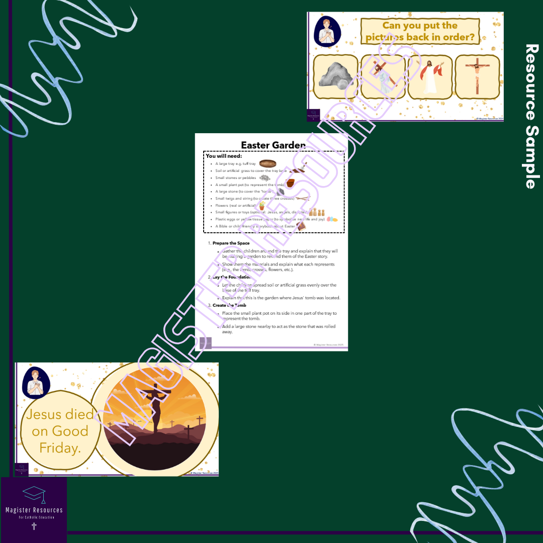 - A simplified version of key events of Holy Week especially Good Friday and Easter Sunday (to enable pupils to recognise key events).