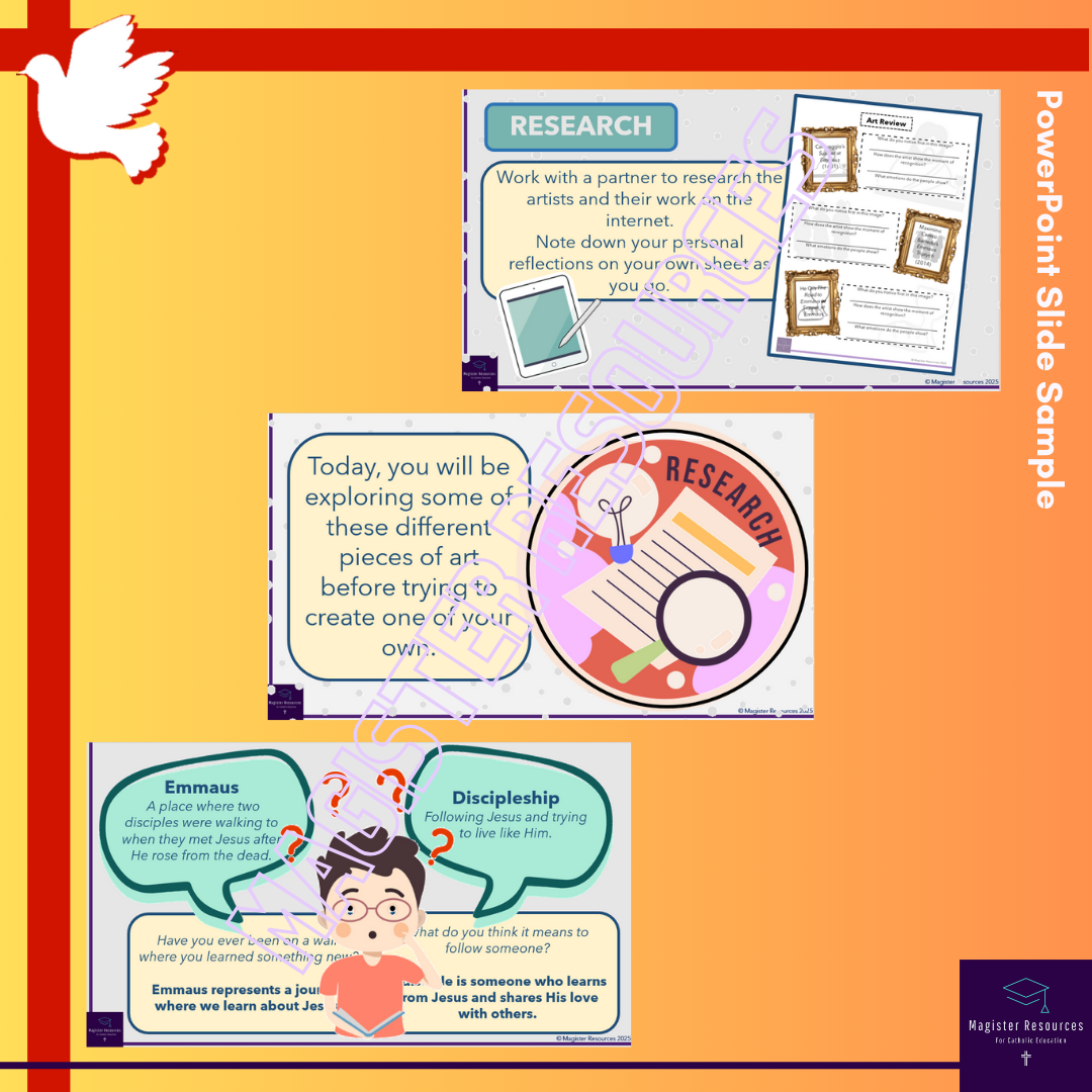 - Art Review - Review prompts for the pupils to use as they research the different representations of Emmaus in art.
