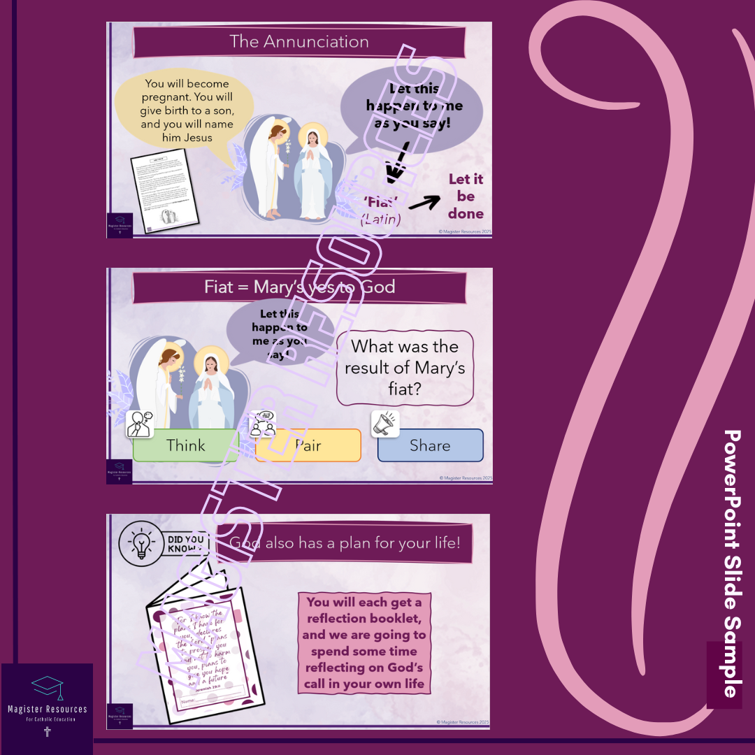 - Reflect on Mary's 'Yes' and consider what life or task God might be calling you to