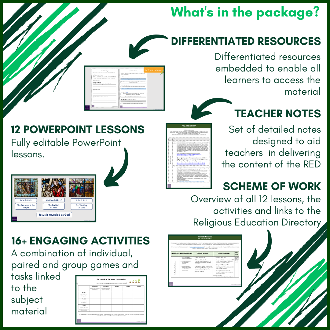- Scheme of work document outlining lesson objectives, activities and RED links