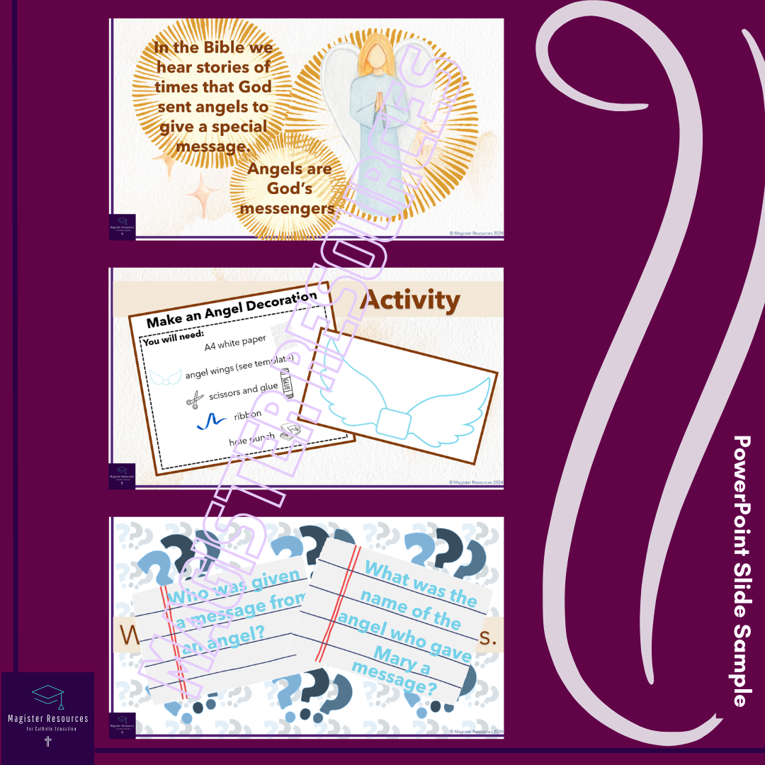 1. Recognise that angels bring God’s message and are a sign that Jesus is the Son of God. 2. Think about why the words of the angels are in the ‘Hail Mary’.