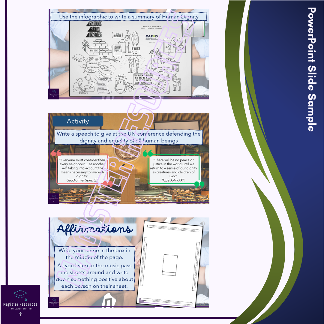 - Human Dignity Infographic - From the CAFOD video resource on Human Dignity, all the key information about human dignity in a poster