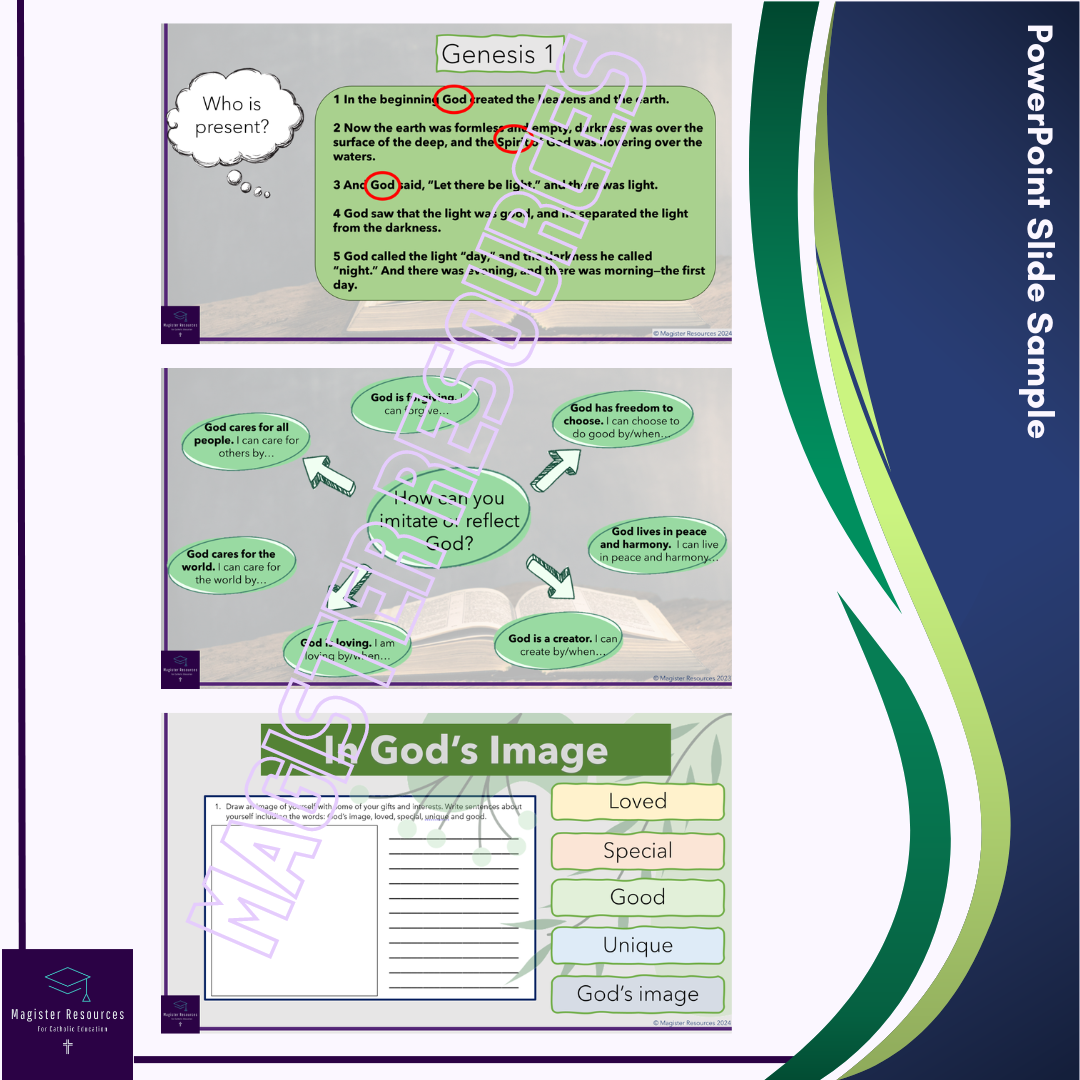 - Imago Dei Worksheets - Identify characteristics of God and ways in which you are like him. Write sentences using key words about the Church’s teaching about Imago Dei.