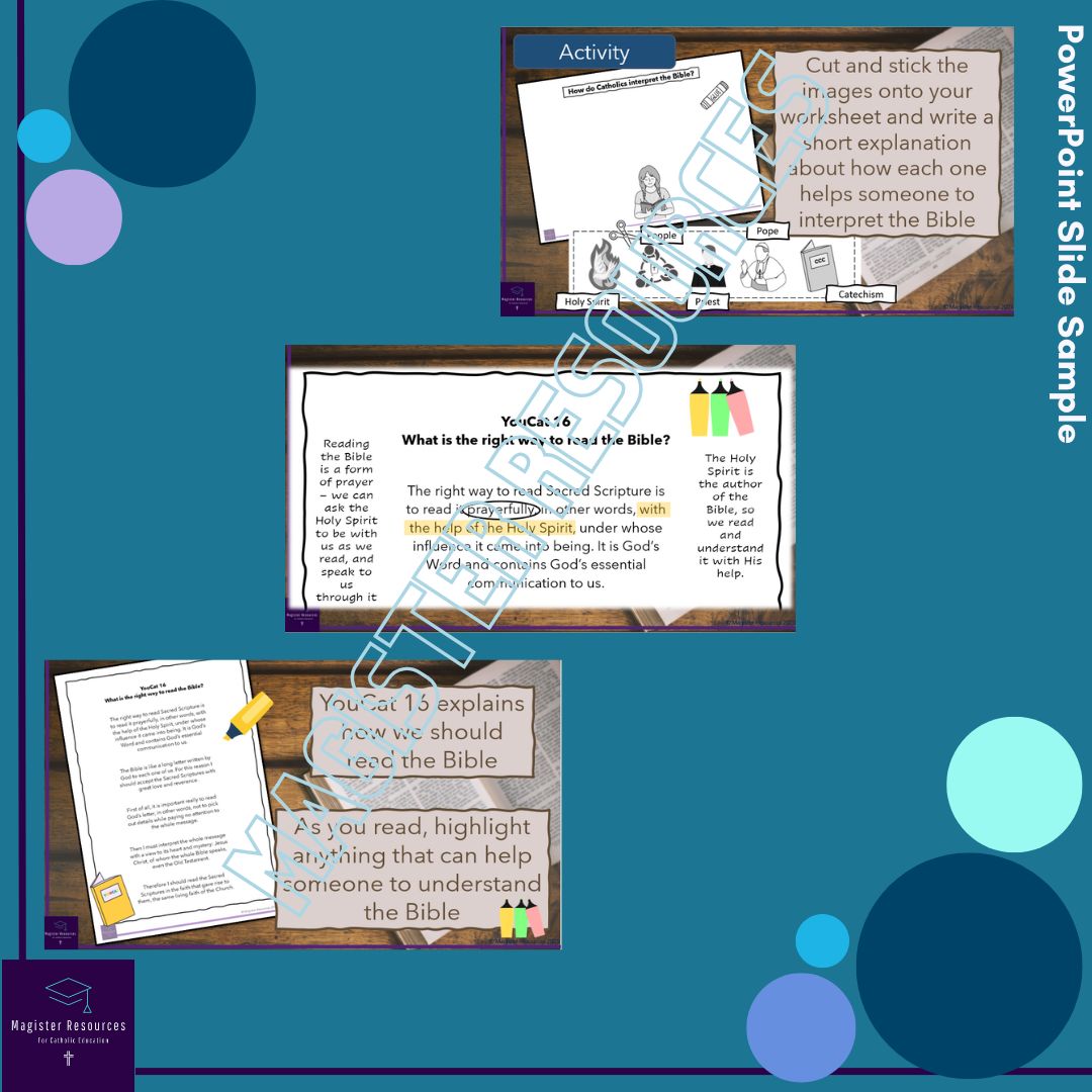 - How to interpret the Bible - A poster template with images to cut and stick to create an information poster about how Catholics interpret the Bible