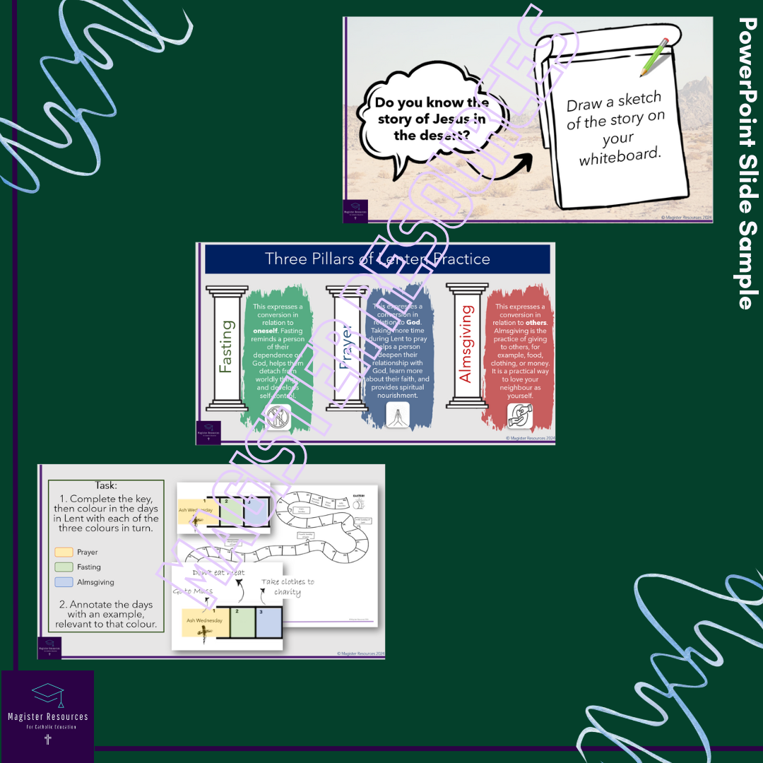 - Lent Journey - An A3 sheet depicting the 40 days of Lent with activity for pupils to complete.