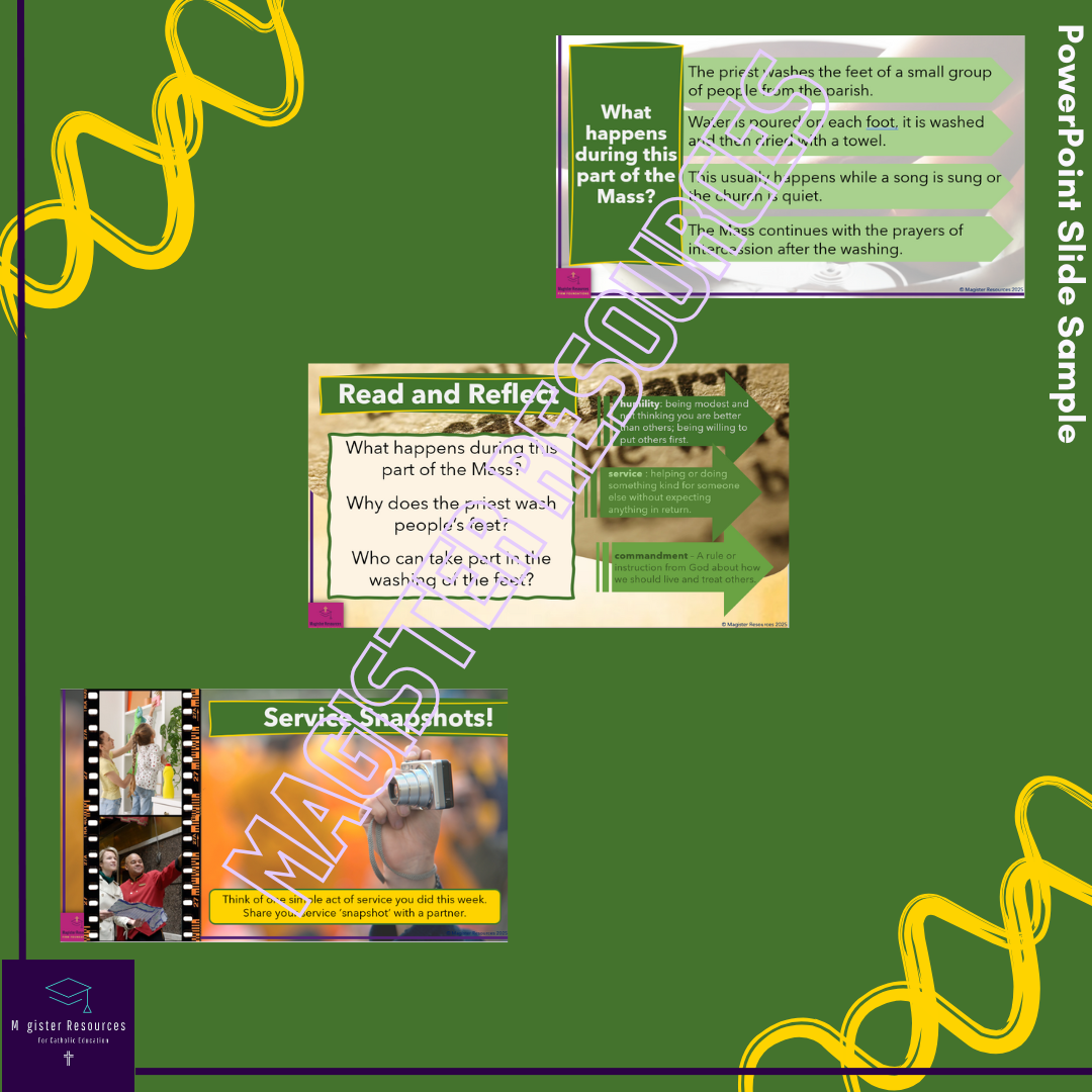 - Make links between the account of Jesus washing His disciples' feet and what happens at Mass on Holy Thursday