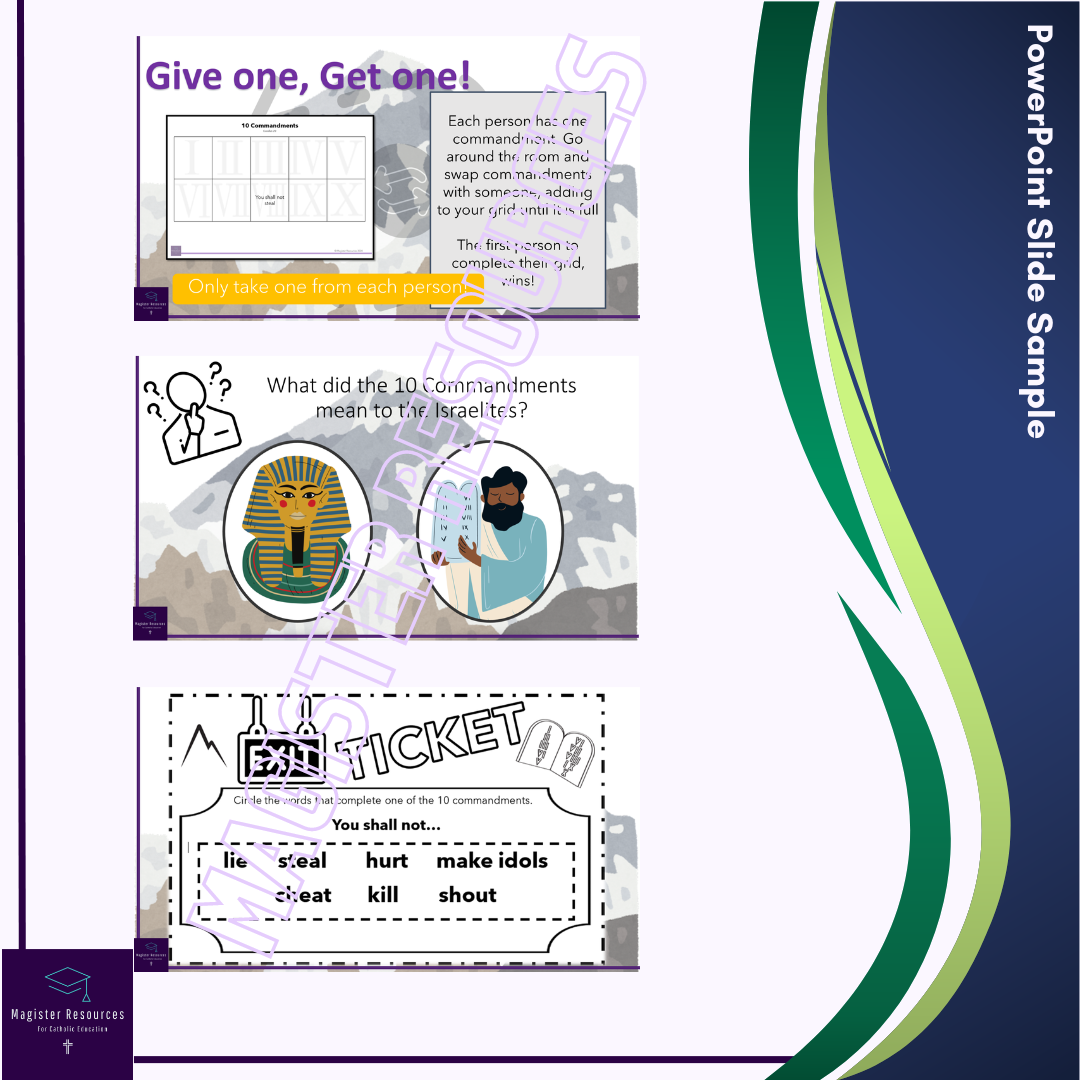 1. Retell the Moses story, focusing on the Ten Commandments.