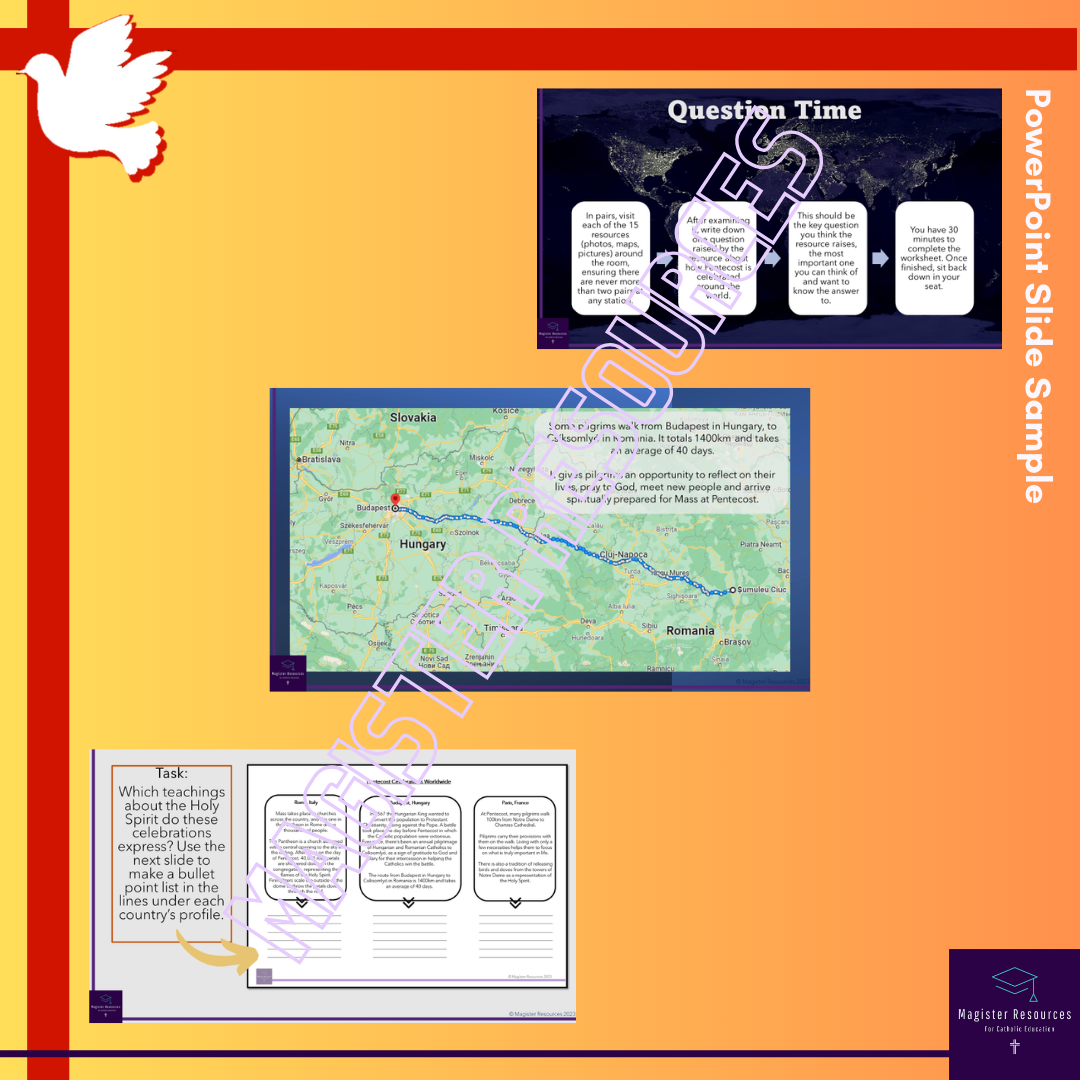 - Record It: Question Time - There are a series of 15 resources included in the PowerPoint Lesson (photos, maps, pictures etc) showing how Pentecost is celebrated in Hungary, France and Italy. This question sheet gives pupils space to write down a question they have about each resource.
