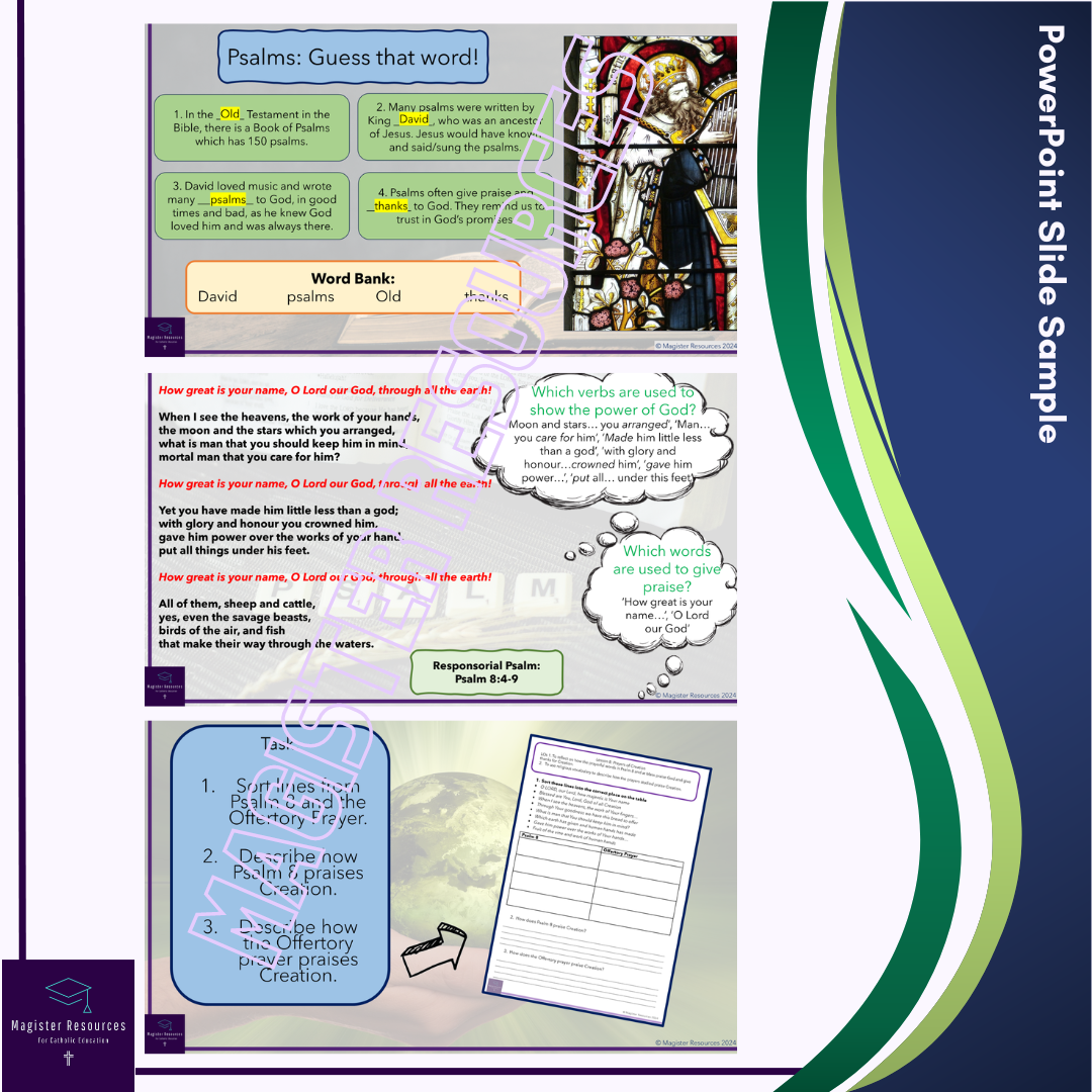 - Prayers of Creation Worksheets - Sort the lines from Psalm 8 and the Offertory prayer. Write a prayer of praise using similar language. Describe how Psalm 8 praises Creation.