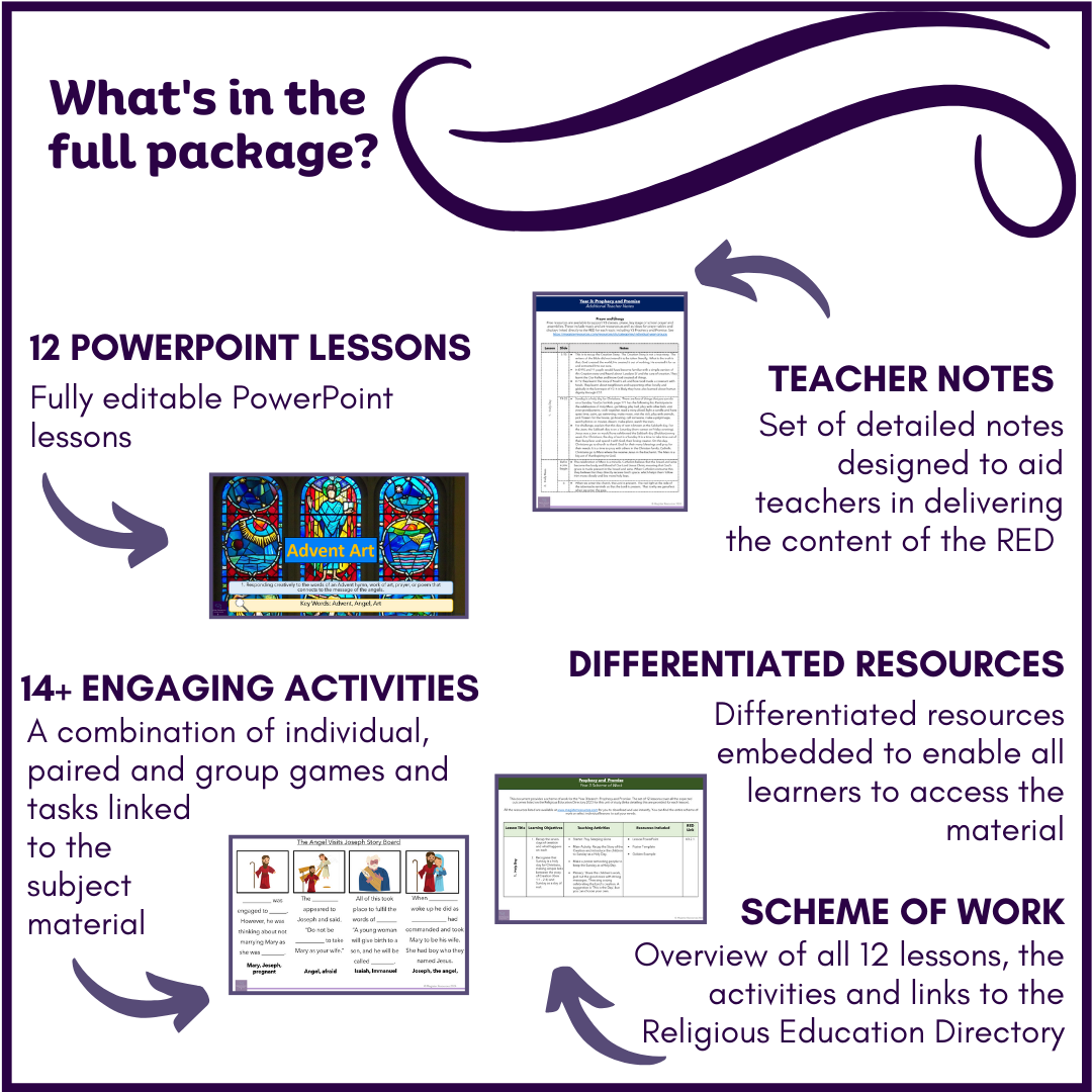 - Scheme of work document outlining lesson objectives, activities and RED links