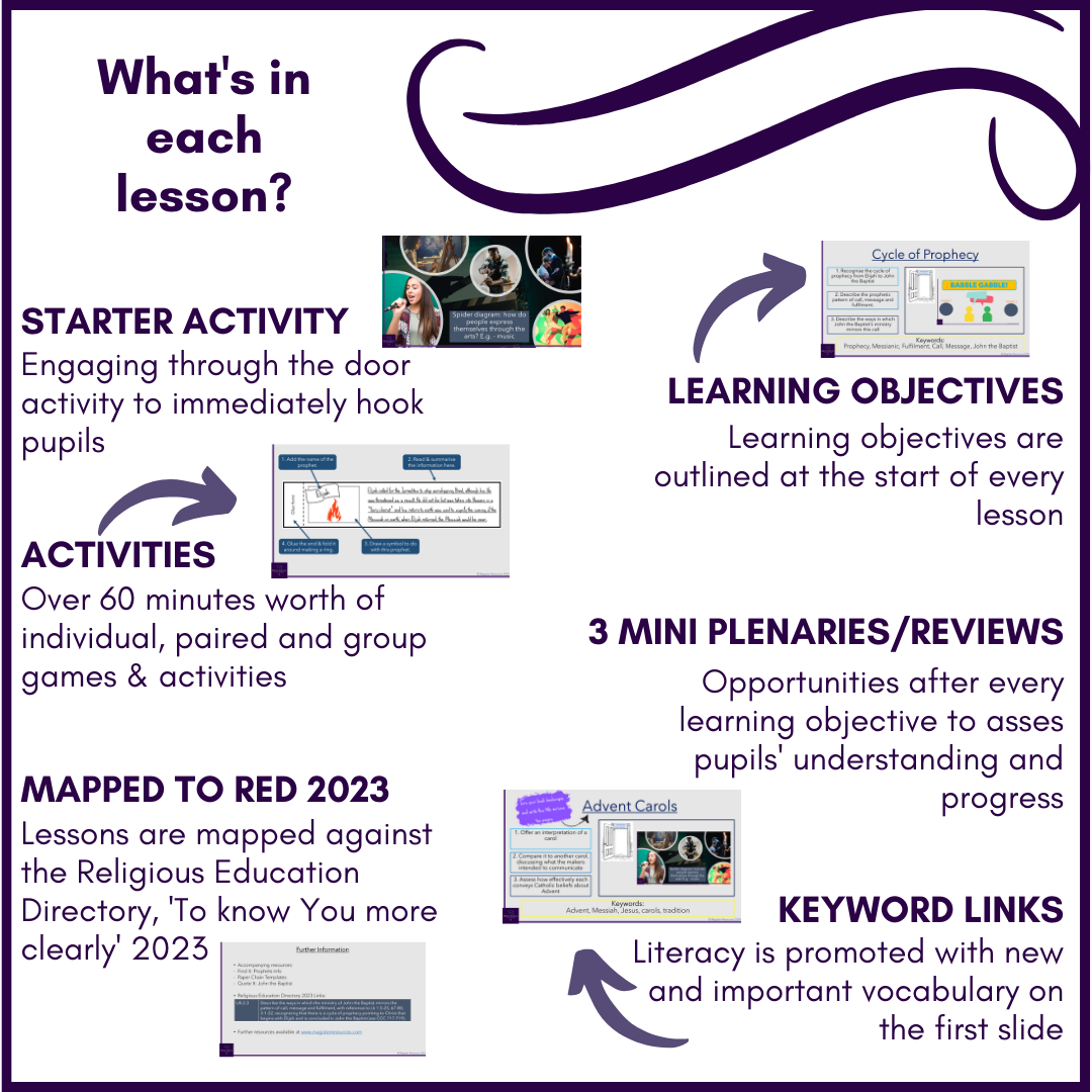 - Scheme of work document outlining lesson objectives, activities and RED links