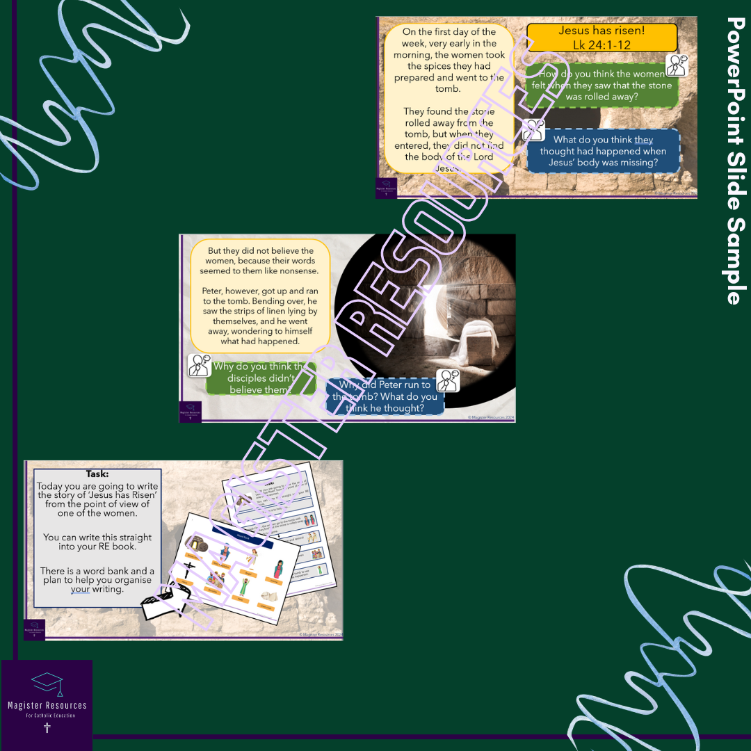 Hear - By the end of this unit of study, pupils will have revisited and encountered the following key texts: The angel’s message (Lk 24:1-8*) • Peter at the tomb (Lk 24:9-12)