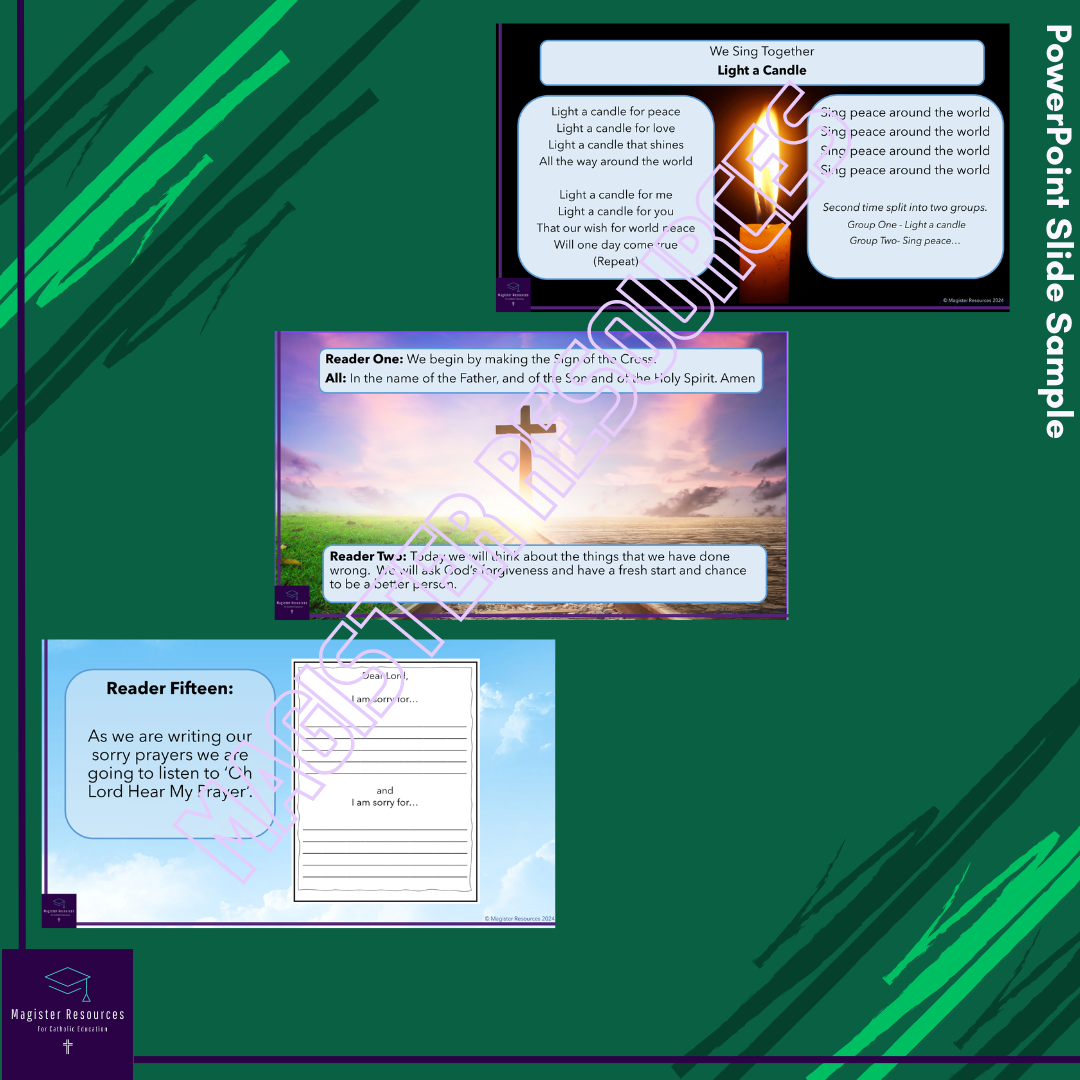 - Service of Reconciliation - A sheet which has the full service from the PowerPoint on a sheet, so that you can give the children the readings in advance. You can also do the full service outdoors if you wish.