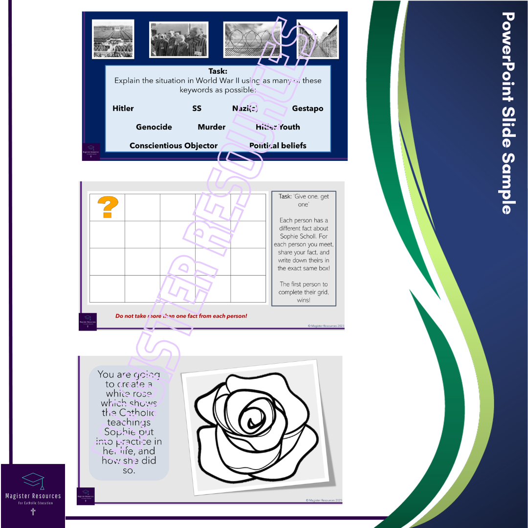 - Create It: Rose Template - A template for pupils to create a rose, representing Scholl’s involvement in the White Rose Movement. On each petal, pupils write the Catholic teachings Scholl showed in her life, and how she practiced them.