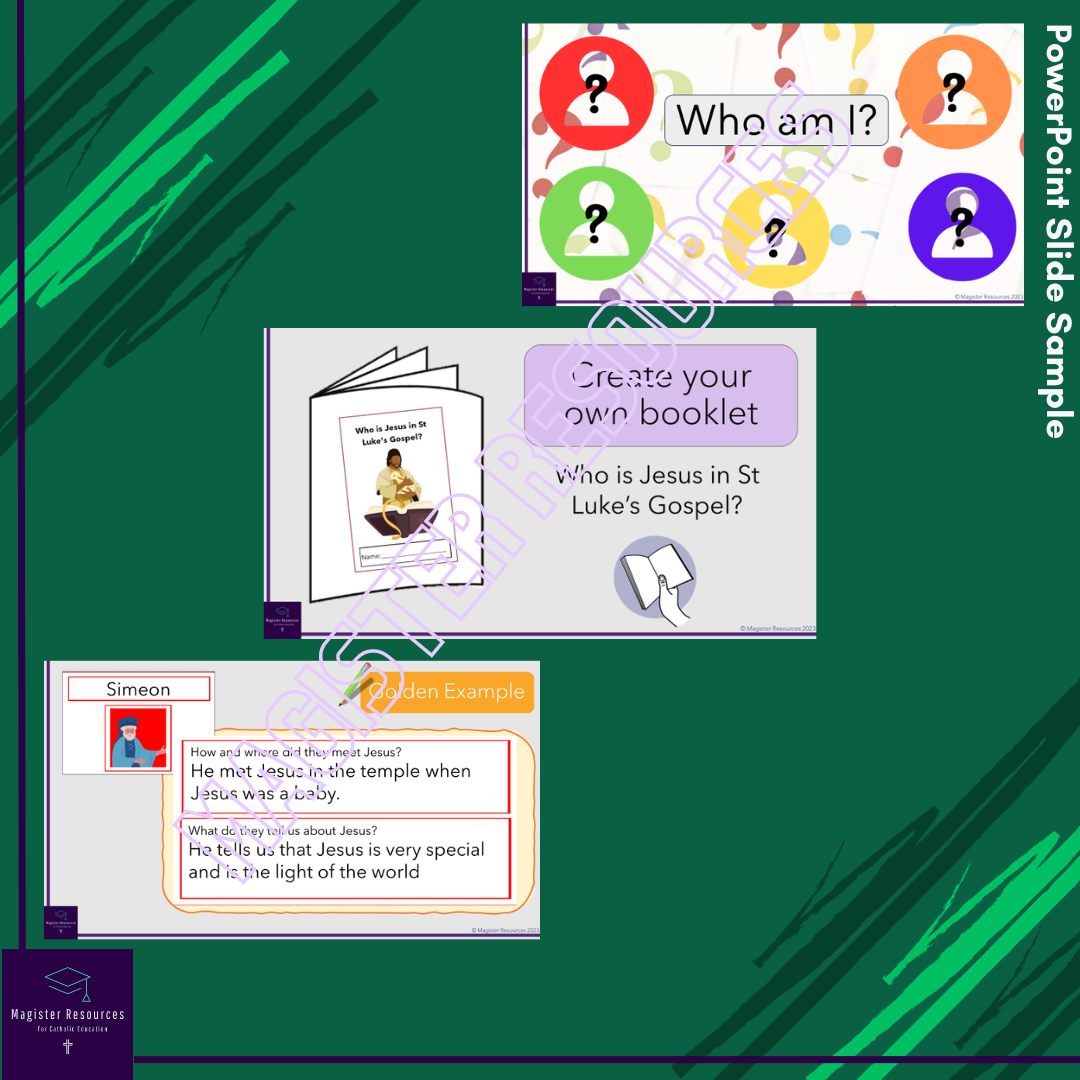 1. To know what St Luke's Gospel tells us about Jesus. (Note - this lesson is designed to take two lessons to give pupils enough time to recap the characters they've met throughout the unit, and complete their booklets showing what these characters and St Luke's Gospel teach us about Jesus).