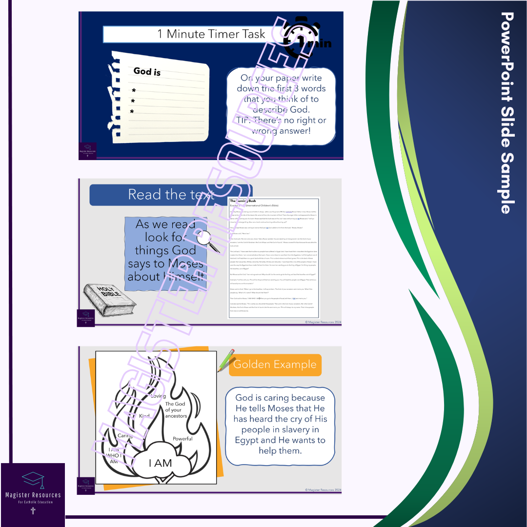 - I AM Worksheet - Write onto the image of the burning bush the things that God reveals to Moses about Himself