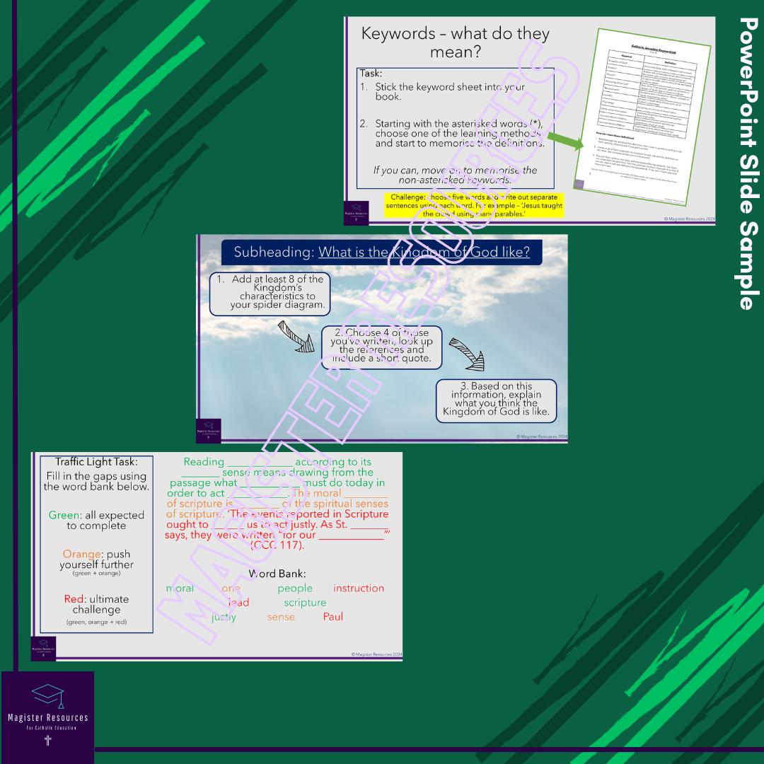 This product is only authorised for use by yourself and teachers in your school. Copying or sharing it with others, or uploading to public shared drives or Facebook groups breaches copyright and legal action will be taken. Magister Resources can only continue to exist and support Catholic education through people purchasing material.
