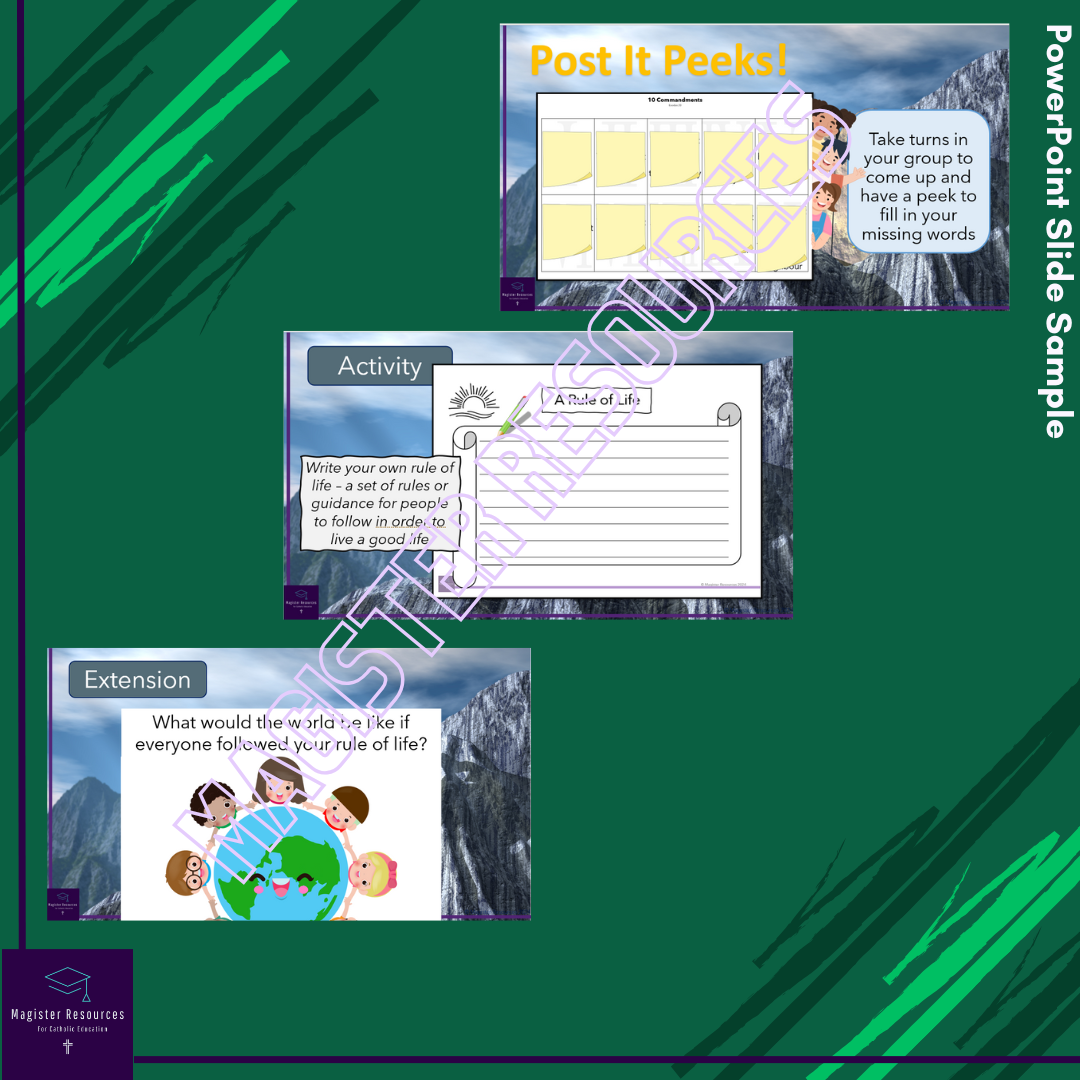 - 10 Commandments Teacher Copy - A large copy of the 10 commandments to cover with post-it notes before the starter activity