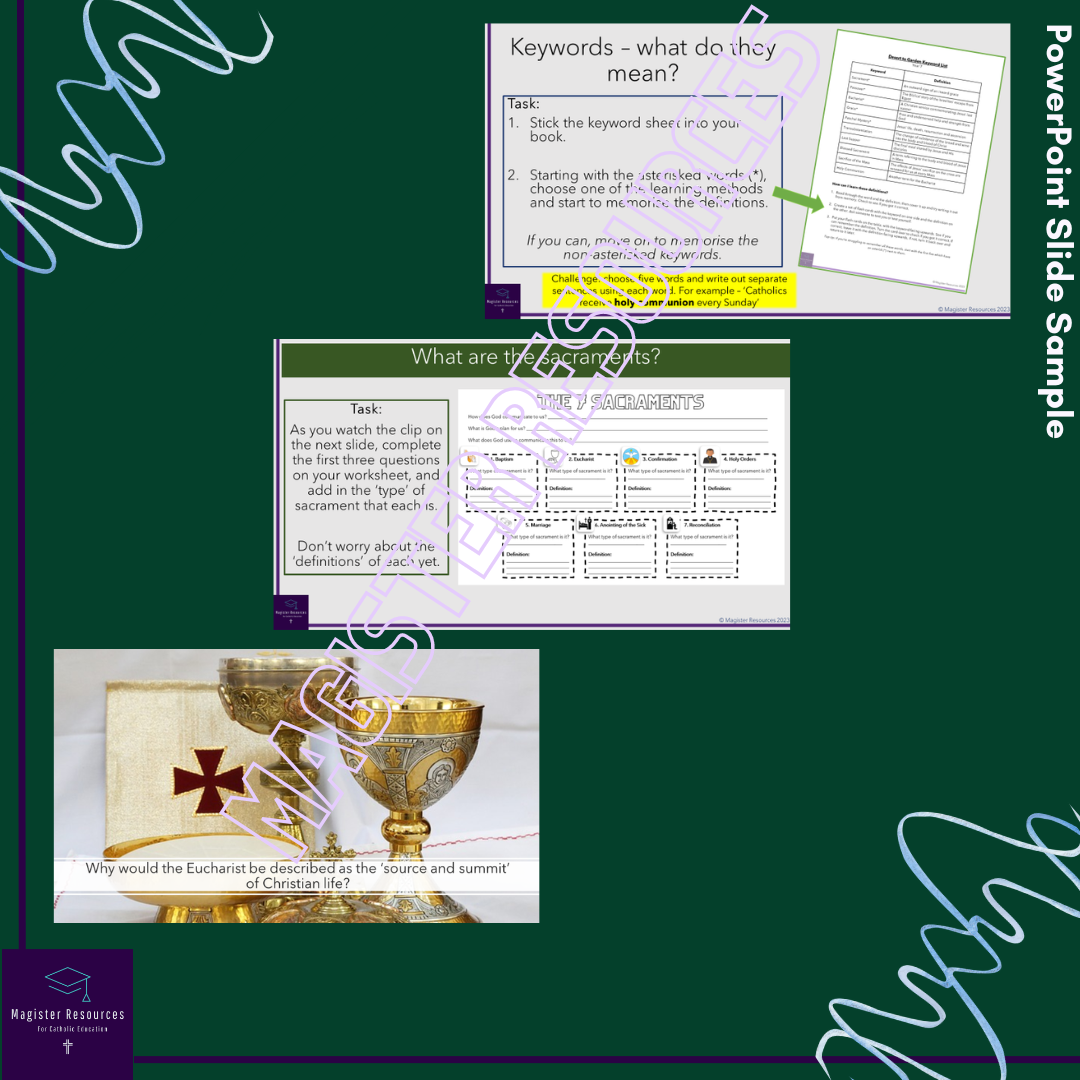 - Sacraments Cards - the name and a symbol for each of the sacraments. These could be used for lower ability pupils to practice recall.