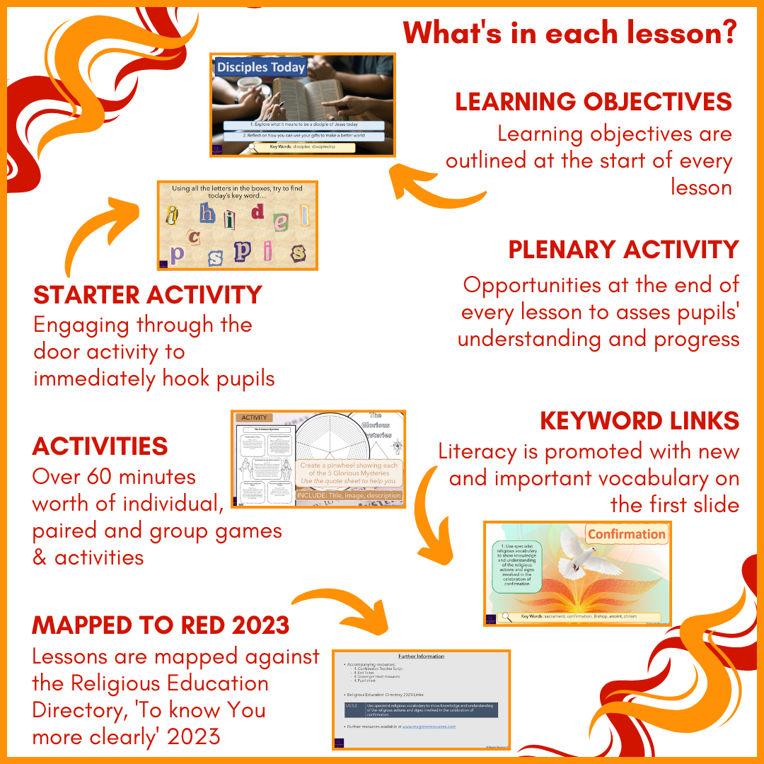 - Scheme of work document outlining lesson objectives, activities and RED links