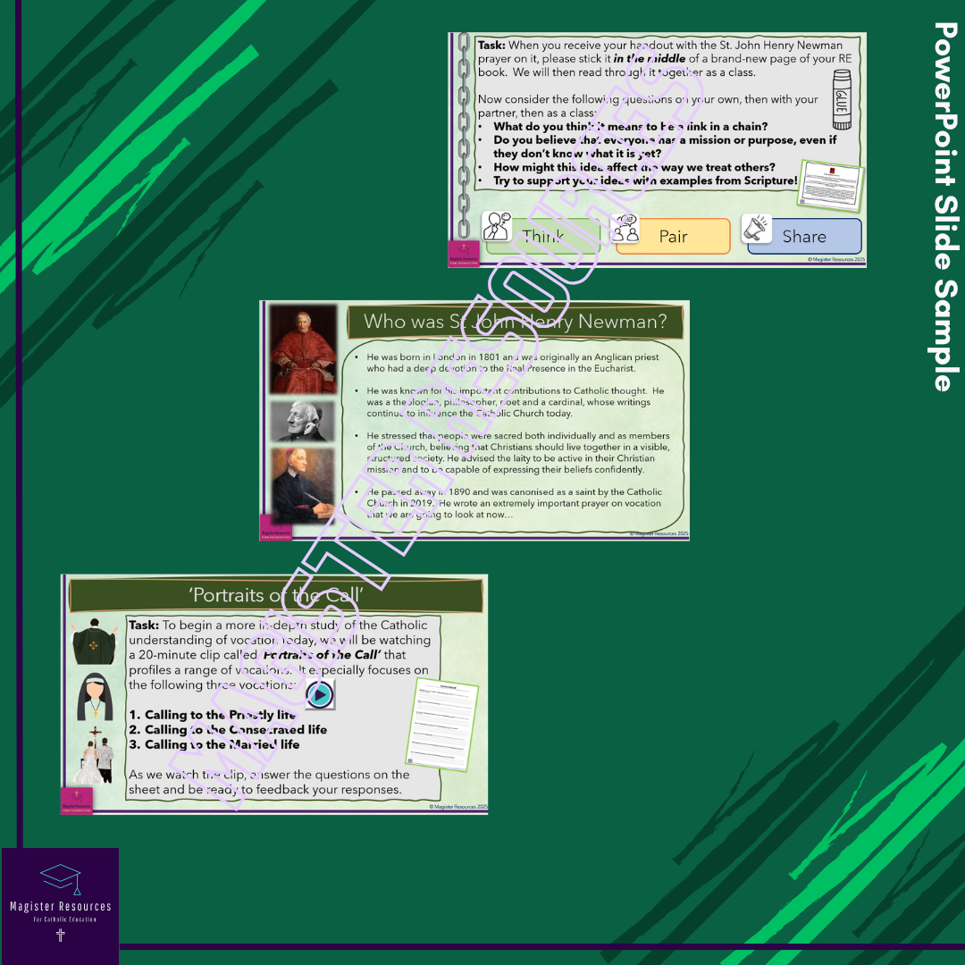 This product is only authorised for use by yourself and teachers in your school. Copying or sharing it with others, or uploading to public shared drives or Facebook groups breaches copyright. Magister Resources can only continue to exist and support Catholic education through people purchasing material.