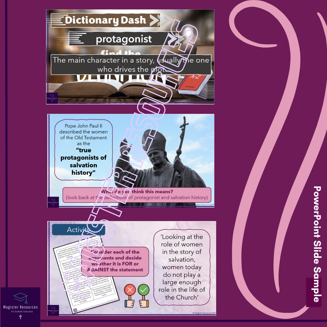- U6.2.2 - Use theological language to explain what is meant by describing the women of the Old Testament as ‘true protagonists of salvation history’ (Pope John Paul II’s address, General Audience, 27 March 1996), making relevant links with the stories of some key women from the Old Testament.